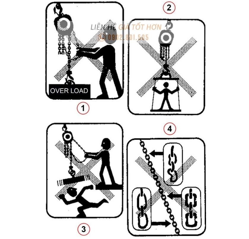 - Không Dùng Để Nâng Hạ Người: Pa lăng không thiết kế để nâng hạ con người.