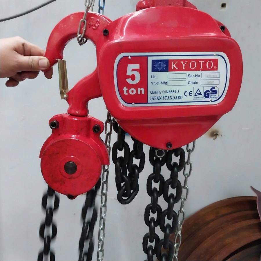 [Hình ảnh 3: Chi tiết móc cẩu và xích tải chắc chắn của pa lăng Kyoto]