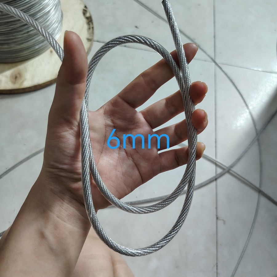 Đường kính tổng của sợi cáp là 6mm (hoặc 6 ly). Đường kính lõi thép bên trong thường lớn hơn so với các loại cáp nhỏ hơn, đóng góp chính vào khả năng chịu tải. Cáp bọc nhựa 6 ly thường được cung cấp theo cuộn lớn hơn các loại cáp nhỏ, với chiều dài phổ biến như 100m, 200m, hoặc cuộn lớn hơn tùy theo nhu cầu công nghiệp, thuận tiện cho việc sử dụng trong các dự án quy mô lớn, giảm thiểu mối nối.