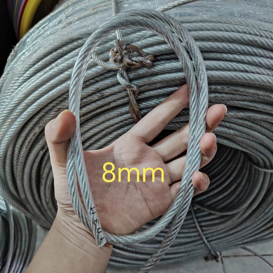 Sự khác biệt chính là khả năng chịu tải. Cáp bọc nhựa 8 ly có đường kính lõi thép lớn hơn và tổng thể cứng cáp hơn cáp 6 ly, do đó khả năng chịu lực kéo đứt và tải trọng làm việc an toàn của nó cũng cao hơn đáng kể. Cáp 6 ly phù hợp cho tải trọng nặng, còn cáp 8 ly được thiết kế cho tải trọng *rất nặng* và các ứng dụng công nghiệp đòi hỏi mức độ an toàn và độ bền cao hơn nữa.