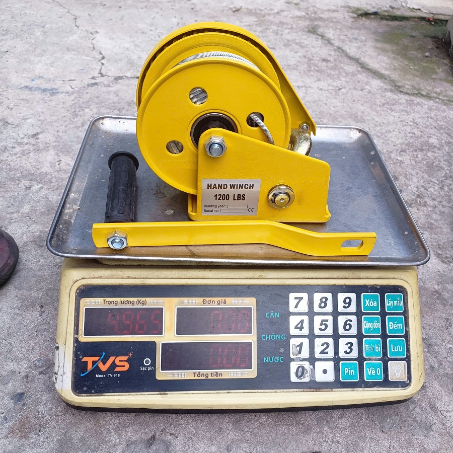 1200 LBS (Pound) tương đương khoảng 544.31 kg. Trong thực tế, người ta thường làm tròn và hiểu rằng tời quay tay 1200LBS có khả năng kéo tải trọng khoảng 544kg hoặc 550kg.